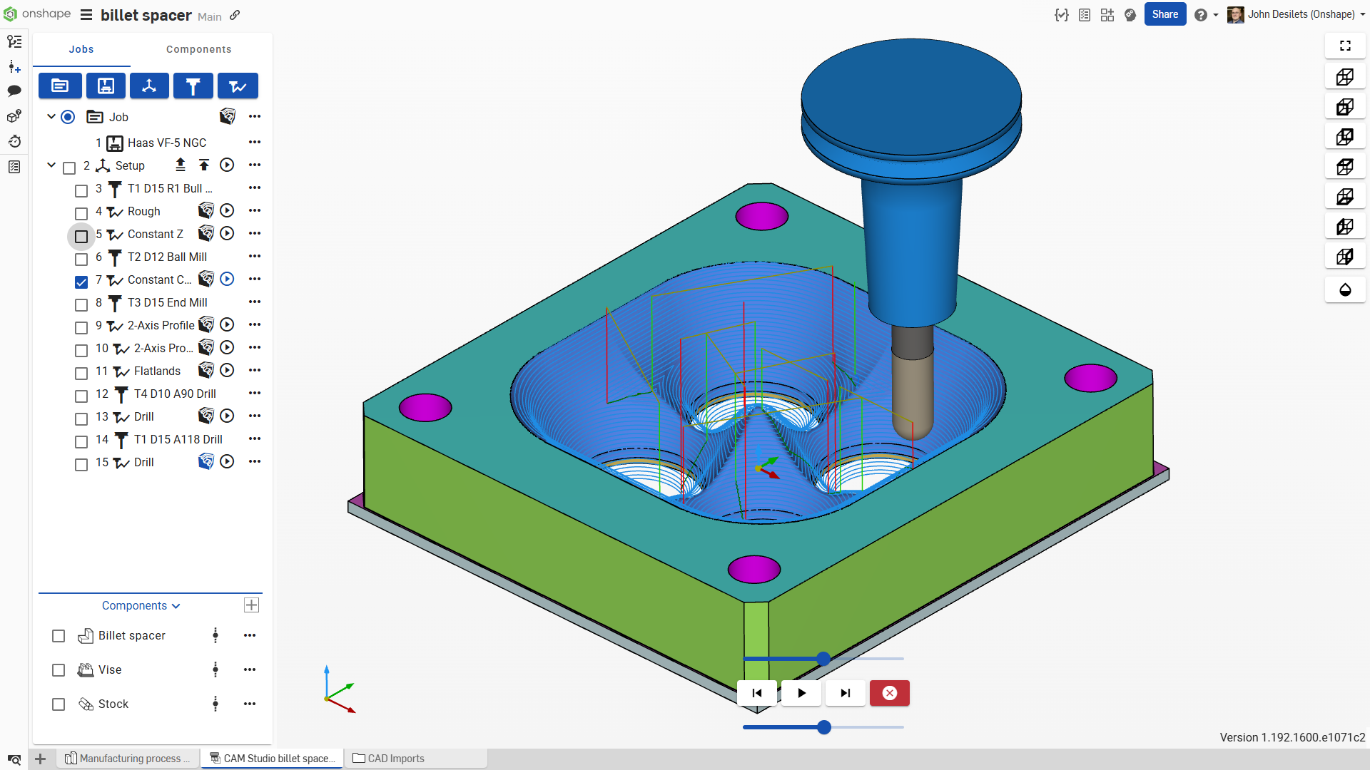 CAM Studio is integrated into Onshape as well as any CAM program has ever been integrated into a CAD program. Moving from CAD to CAM is seamless. Onshape users should have no trouble easing into the machine shop experience — though a background in machining operations, CNC machines, cutting tools, speeds and feeds, etc., would help.
