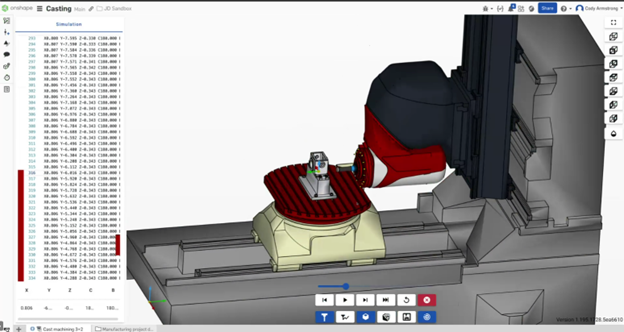 CAM Studio’s full machine kinematics mode shows part, fixtures and cutting machine. Image: Onshape.