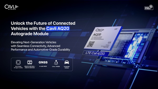 SAN JOSE, CA, Feb 3, 2025 – Cavli Wireless has announced the launch of its latest Autograde AQ20 IoT Module. The AQ20 is engineered to meet the demands of connected vehicle applications, delivering robust LTE Cat 4 connectivity and durability for automotive environments. This launch strengthens Cavli’s role as a reliable partner for OEMs building advanced automotive solutions.